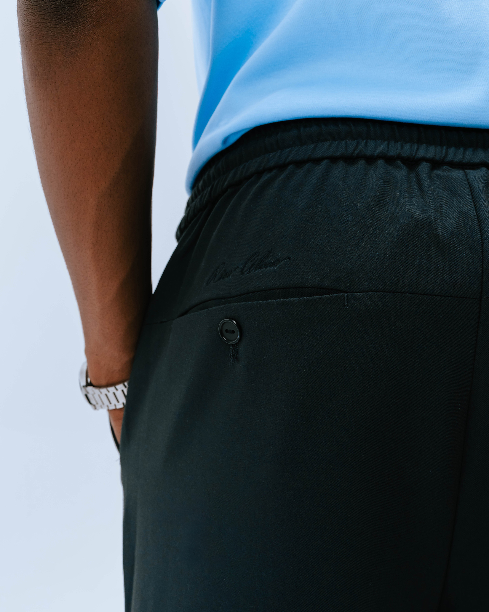 - Relaxed fit with elastic waistband